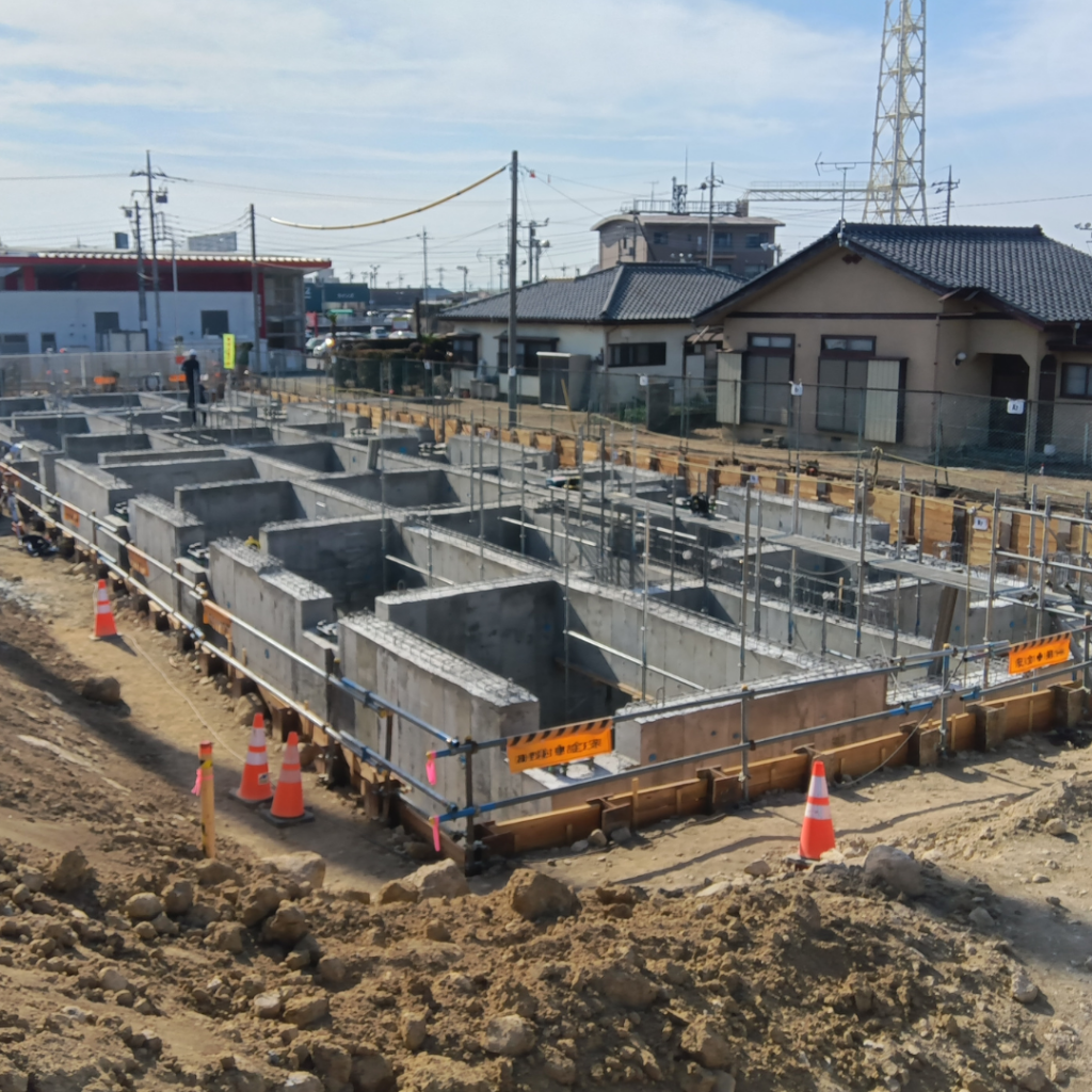 建物の土台となる重要な工程を、関係者一同、確認を重ねながら丁寧に進めています。